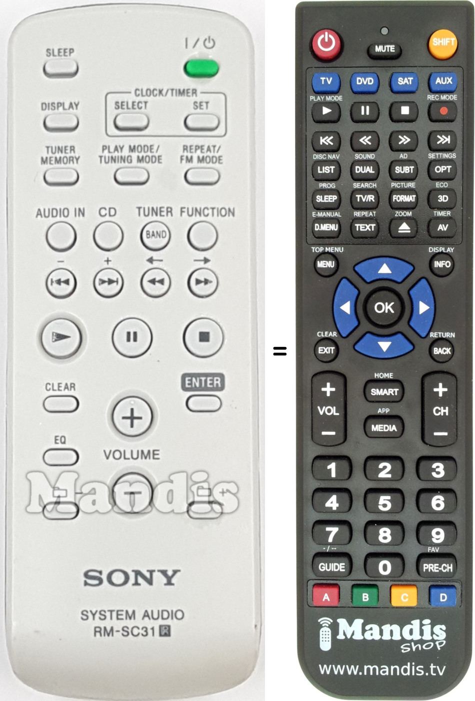 This remote control fully replaces your RM-SC 31 (A1237274A) and offers all the functions of the original.