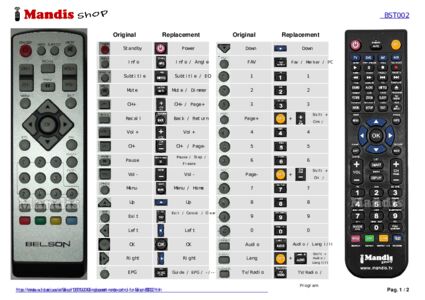 Below, we will show you the correspondence between each button on the original remote control and the button that performs the same function on the replacement remote control. In some cases, you may need to press the SHIFT key before pressing another button to perform certain actions. These additional functions are often not widely used and are included to facilitate understanding of the replacement remote control, or because the original remote control has more buttons than its equivalent.