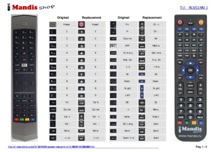 A document is included to help you use the new remote control easily, showing the button correspondence.
