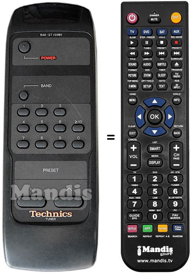 Remote control to replace the original remote RAK-ST106WH and all its functions.