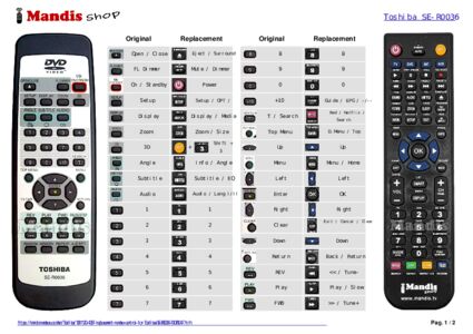 Below, we will show you the correspondence between each button on the original remote control and the button that performs the same function on the replacement remote control. In some cases, you may need to press the SHIFT key before pressing another button to perform certain actions. These additional functions are often not widely used and are included to facilitate understanding of the replacement remote control, or because the original remote control has more buttons than its equivalent.