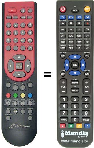 Below, we will show you the correspondence between each button on the original remote control and the button that performs the same function on the replacement remote control. In some cases, you may need to press the SHIFT key before pressing another button to perform certain actions. These additional functions are often not widely used and are included to facilitate understanding of the replacement remote control, or because the original remote control has more buttons than its equivalent.
