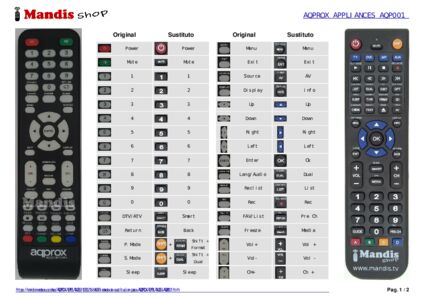 Inicio > Marcas > Mandos a distancia AQPROX APPLIANCES > Mando a distancia para AQPROX APPLIANCES AQP001 > Distribución interactiva de teclas AQPROX APPLIANCES AQP001