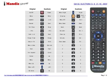 Inicio > Marcas > Mandos a distancia QUIGG ELECTRONICS > Mando a distancia para QUIGG ELECTRONICS B 15 HC 4909 > Distribución interactiva de teclas QUIGG ELECTRONICS B 15 HC 4909