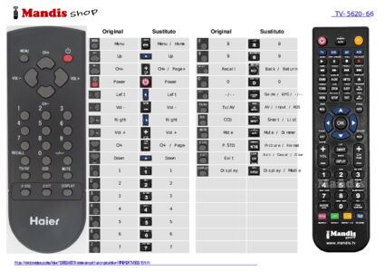 1. Observa las imágenes de los dos mandos a distancia: el original (a la izquierda) y el de sustitución (a la derecha).