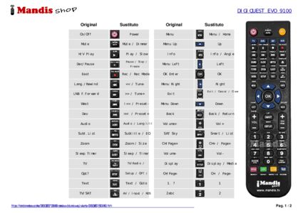 Inicio > Marcas > Mandos a distancia DIGIQUEST > Mando a distancia para DIGIQUEST EVO 9100 > Distribución interactiva de teclas DIGIQUEST EVO 9100