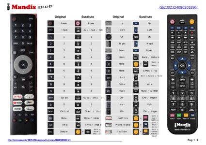 Se incluye un documento para ayudarte a usar el nuevo mando a distancia fácilmente, indicando la correspondencia de los botones.