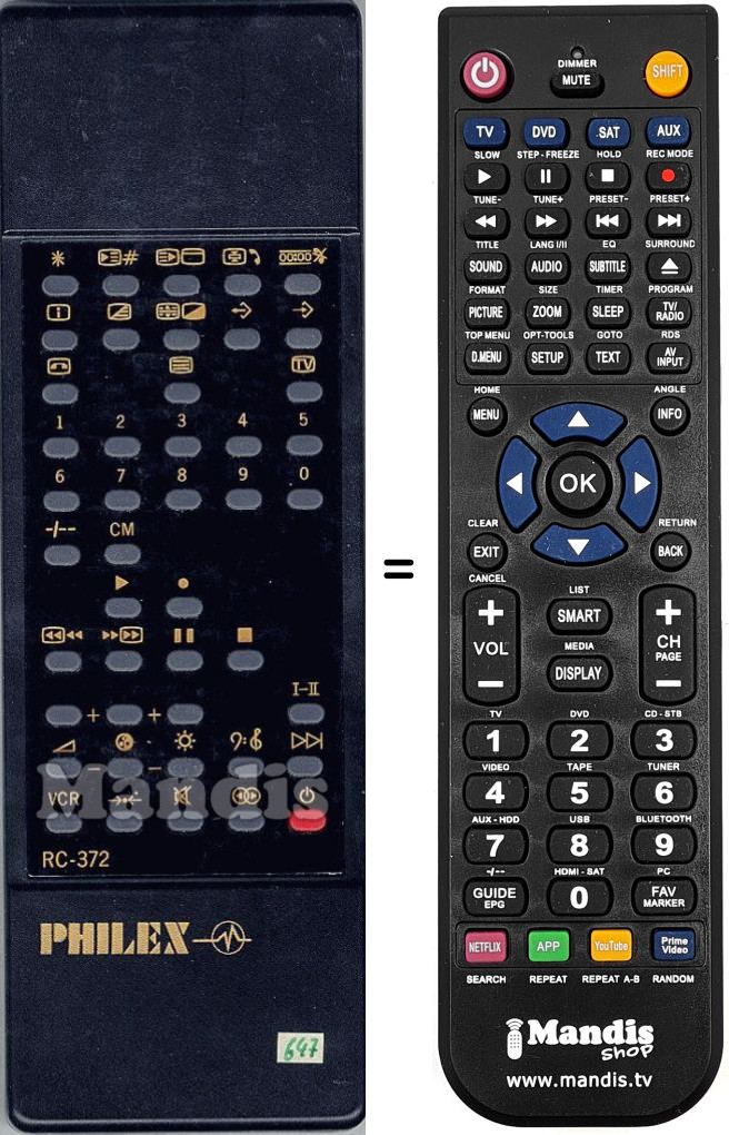 Mando a distancia que reemplaza al original Philex001 en todas sus funciones.