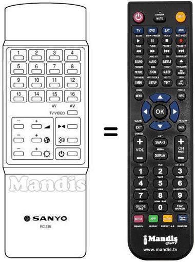 Mando a distancia que reemplaza al original en todas sus funciones.