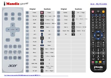 Inicio > Marcas > Mandos a distancia Acer > Mando a distancia para Acer MCJPC11001