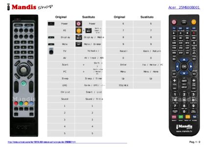 Inicio > Marcas > Mandos a distancia Acer > Mando a distancia para Acer 25M600B001