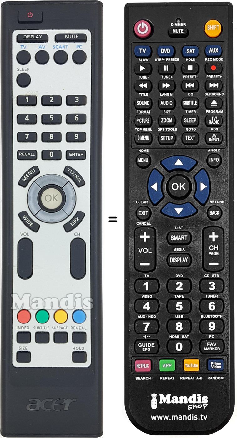 Mando a distancia que reemplaza al original en todas sus funciones.
