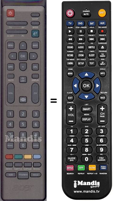Mando a distancia que reemplaza al original en todas sus funciones.