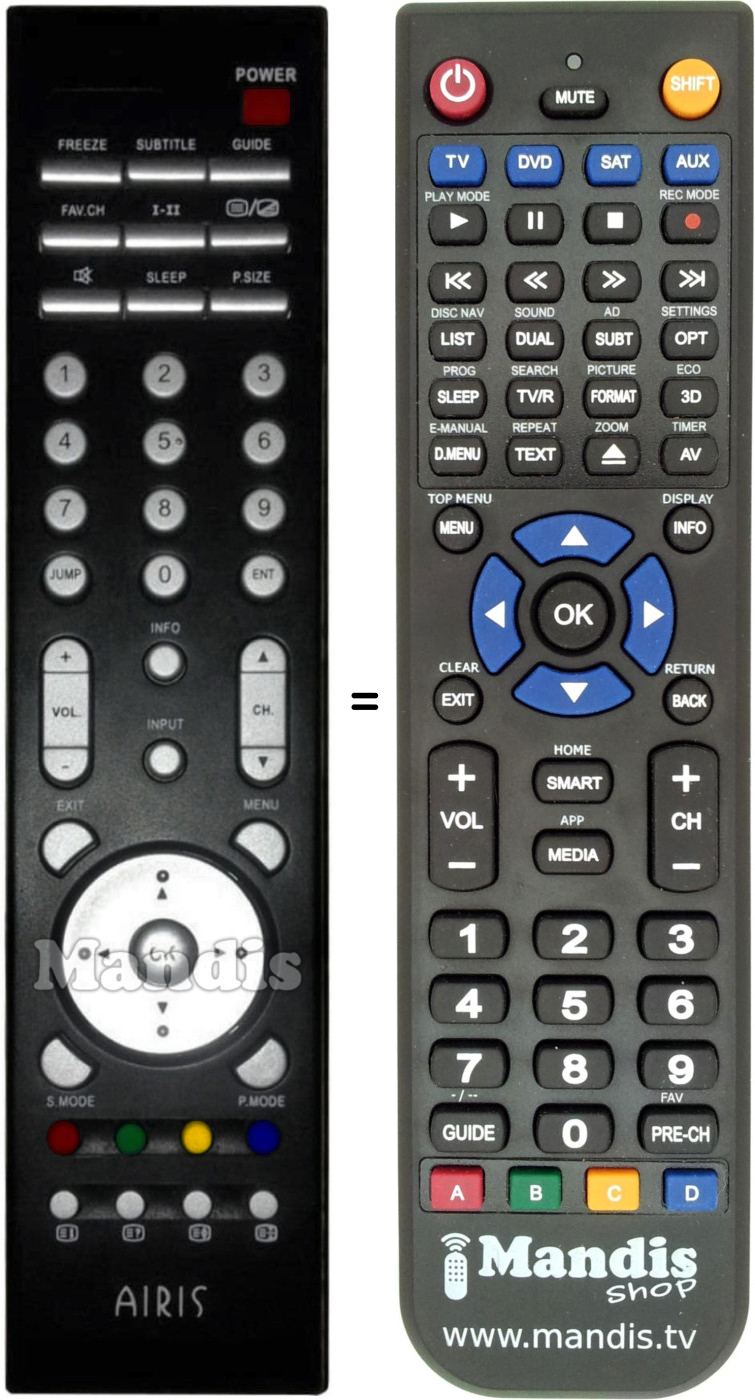 Este mando a distancia reemplaza completamente tu Airis003 y ofrece todas las funciones del original.