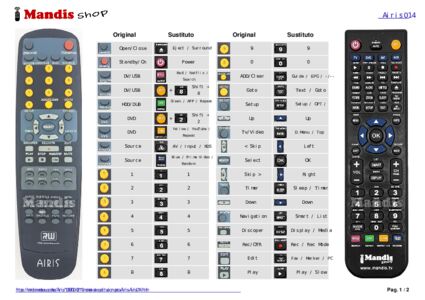 Este mando a distancia reemplaza completamente tu Airis014 y ofrece todas las funciones del original.