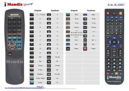 Este mando a distancia reemplaza completamente tu RC-6AS07 y ofrece todas las funciones del original.