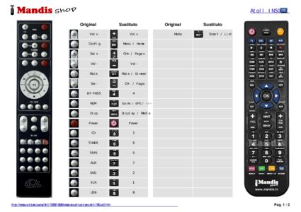 Se incluye un documento para ayudarte a usar el nuevo mando a distancia fácilmente, indicando la correspondencia de los botones.