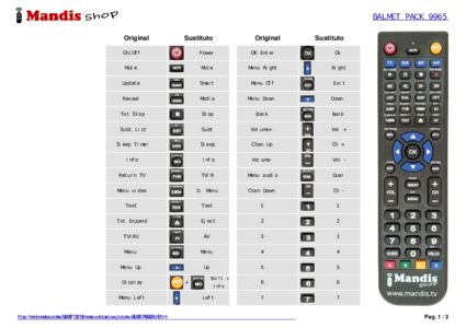 Inicio > Marcas > Mandos a distancia BALMET > Mando a distancia para BALMET PACK9965-HD