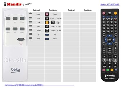 Mando a distancia para Beko 9178013993