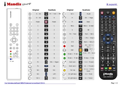 A continuación, le mostraremos la correspondencia entre cada uno de los botones del mando original y el botón que realiza la misma función en el mando de sustitución. En algunos casos, es posible que necesite presionar la tecla SHIFT antes de pulsar otro botón para realizar ciertas acciones. Estas funciones adicionales suelen ser poco utilizadas y se incluyen para facilitar su comprensión del nuevo mando a distancia, o porque el mando original tiene más botones que su equivalente.