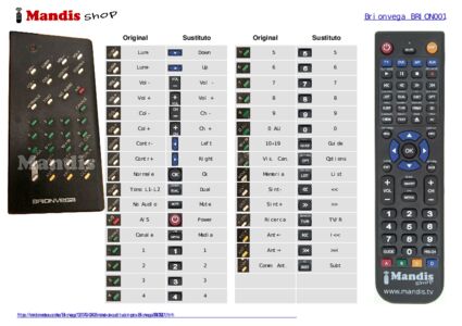 A continuación, le mostraremos la correspondencia entre cada uno de los botones del mando original y el botón que realiza la misma función en el mando de sustitución. En algunos casos, es posible que necesite presionar la tecla SHIFT antes de pulsar otro botón para realizar ciertas acciones. Estas funciones adicionales suelen ser poco utilizadas y se incluyen para facilitar su comprensión del nuevo mando a distancia, o porque el mando original tiene más botones que su equivalente.