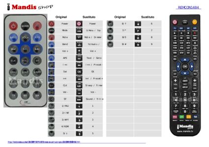 Este mando a distancia reemplaza completamente tu REMCON1484 y ofrece todas las funciones del original.