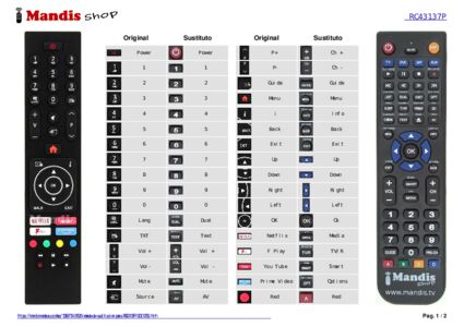 A continuación, le mostraremos la correspondencia entre cada uno de los botones del mando original y el botón que realiza la misma función en el mando de sustitución. En algunos casos, es posible que necesite presionar la tecla SHIFT antes de pulsar otro botón para realizar ciertas acciones. Estas funciones adicionales suelen ser poco utilizadas y se incluyen para facilitar su comprensión del nuevo mando a distancia, o porque el mando original tiene más botones que su equivalente.