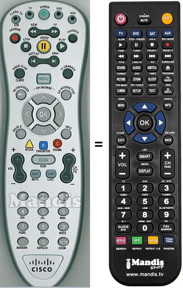 Mando a distancia que reemplaza al original Cisco001 en todas sus funciones.