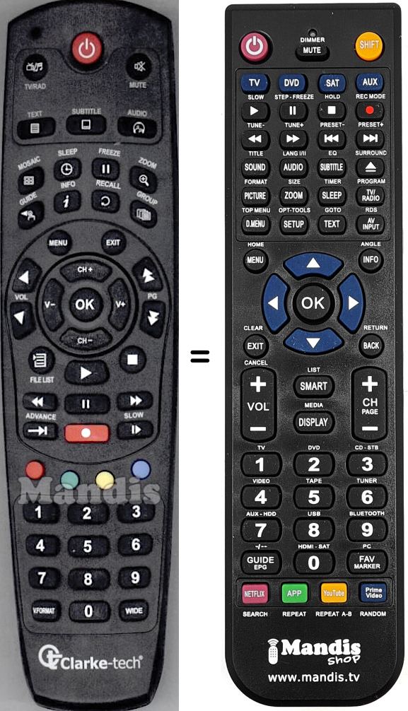 Mando a distancia que reemplaza al original en todas sus funciones.