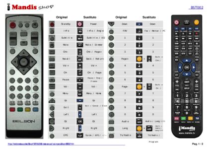 A continuación, le mostraremos la correspondencia entre cada uno de los botones del mando original y el botón que realiza la misma función en el mando de sustitución. En algunos casos, es posible que necesite presionar la tecla SHIFT antes de pulsar otro botón para realizar ciertas acciones. Estas funciones adicionales suelen ser poco utilizadas y se incluyen para facilitar su comprensión del nuevo mando a distancia, o porque el mando original tiene más botones que su equivalente.