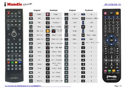 A continuación, le mostraremos la correspondencia entre cada uno de los botones del mando original y el botón que realiza la misma función en el mando de sustitución. En algunos casos, es posible que necesite presionar la tecla SHIFT antes de pulsar otro botón para realizar ciertas acciones. Estas funciones adicionales suelen ser poco utilizadas y se incluyen para facilitar su comprensión del nuevo mando a distancia, o porque el mando original tiene más botones que su equivalente.