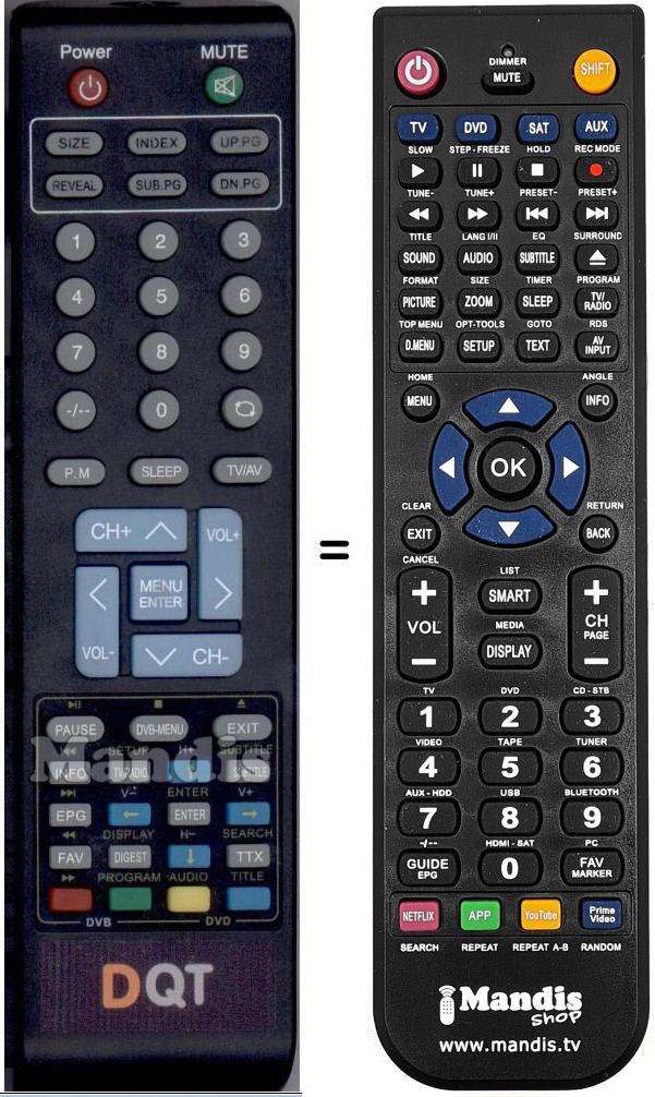 Mando a distancia que reemplaza al original en todas sus funciones.
