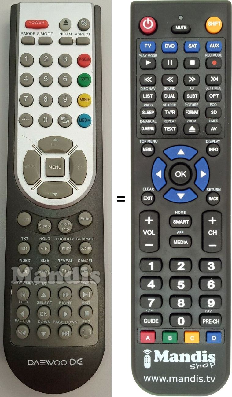 Este mando a distancia reemplaza completamente tu DAE001 y ofrece todas las funciones del original.