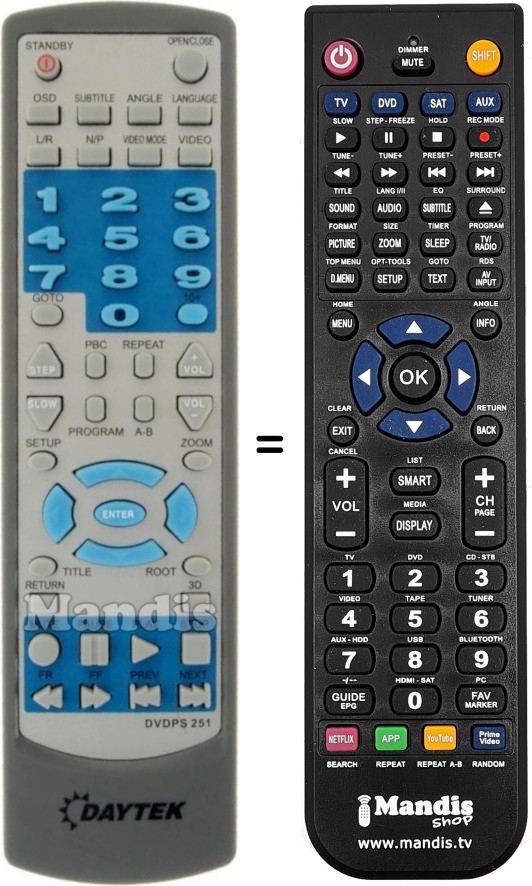 Mando a distancia que reemplaza al original en todas sus funciones.