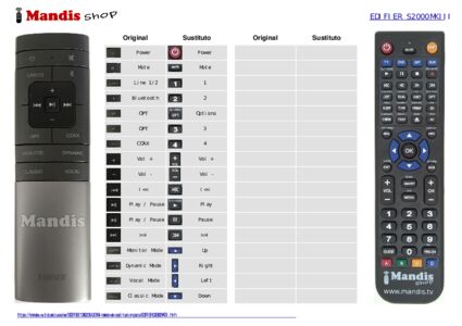 Inicio > Marcas > Mandos a distancia EDIFIER > Mando a distancia para EDIFIER S2000MKIII