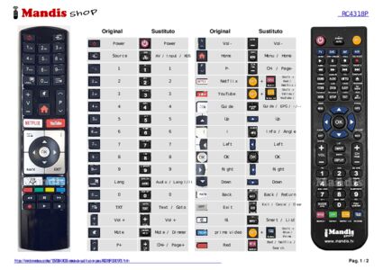 Se incluye un documento para ayudarte a usar el nuevo mando a distancia fácilmente, indicando la correspondencia de los botones.