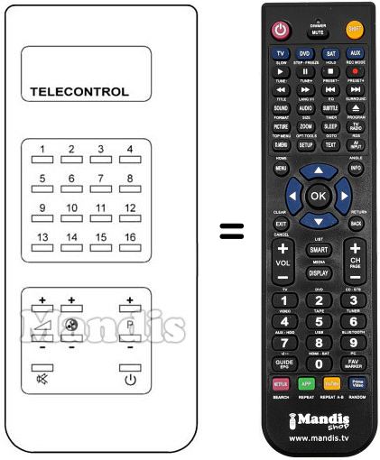 Mando a distancia que reemplaza al original en todas sus funciones. No se trata de una mando universal sinó de un mando que sustituye al original. Recibirá el mando completamente listo para hacerlo funcionar sólo necesita ponerle las pilas. No es necesario programarlo. Le damos total garantía de que el mando cumplirá con las mismas funciones del mando original.