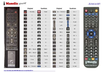 Este mando a distancia sustituye la mayoría de las funciones de tu Echostar005. No es un mando a distancia universal, sino una copia con la mayoría de las teclas y funciones de tu original.