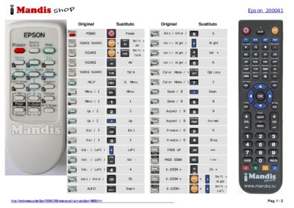 A continuación, le mostraremos la correspondencia entre cada uno de los botones del mando original y el botón que realiza la misma función en el mando de sustitución. En algunos casos, es posible que necesite presionar la tecla SHIFT antes de pulsar otro botón para realizar ciertas acciones. Estas funciones adicionales suelen ser poco utilizadas y se incluyen para facilitar su comprensión del nuevo mando a distancia, o porque el mando original tiene más botones que su equivalente.