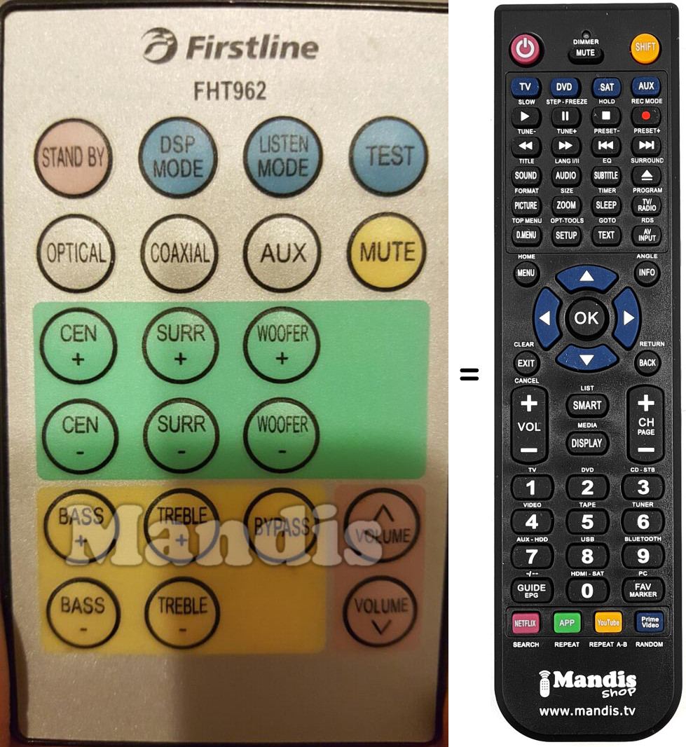 Mando a distancia que reemplaza al original en todas sus funciones.