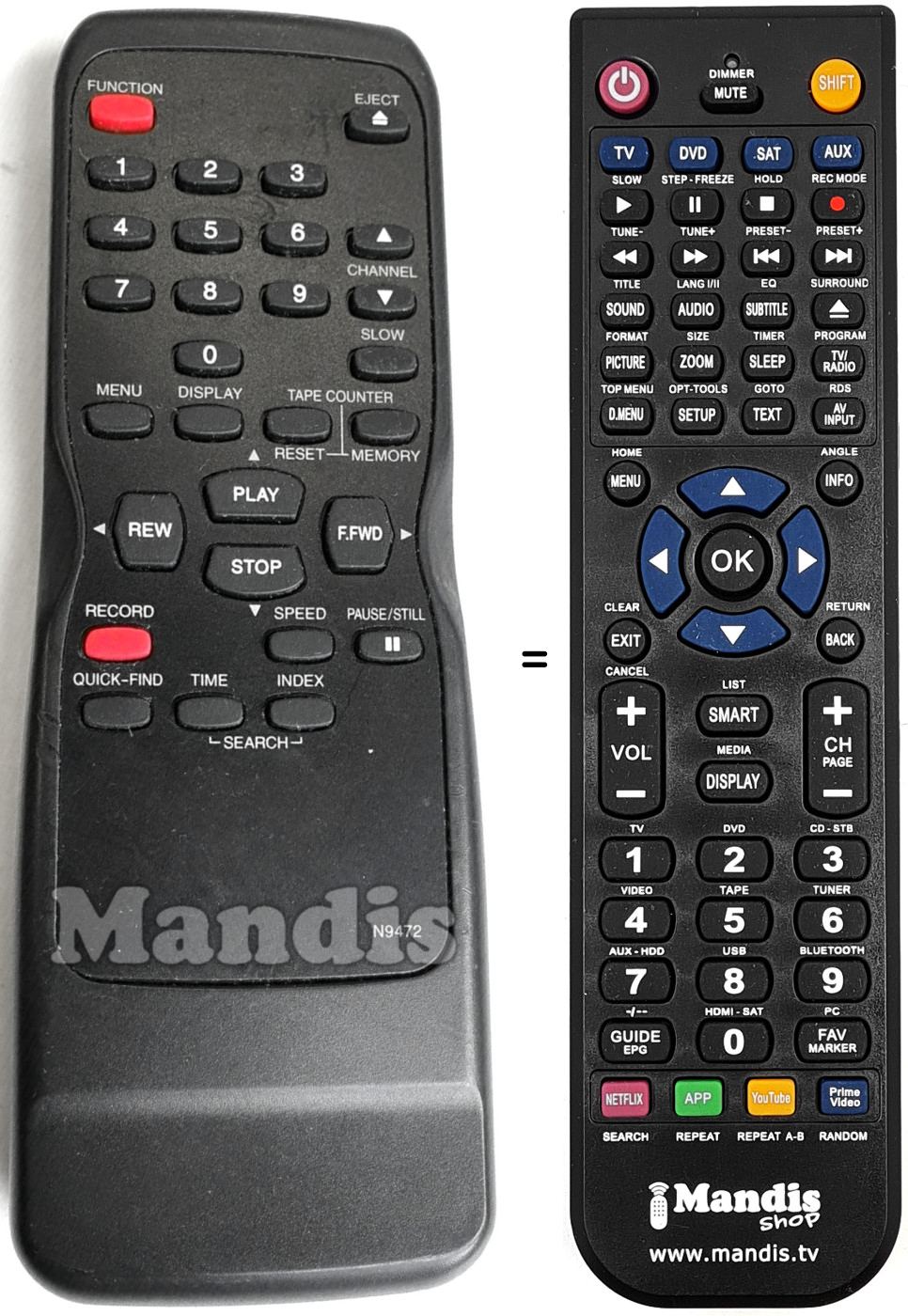 Mando a distancia que reemplaza al original en todas sus funciones.