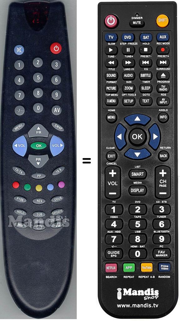 Mando a distancia que reemplaza al original en todas sus funciones.
