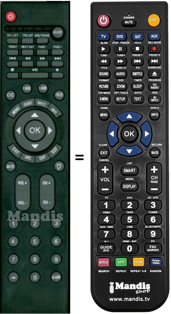 Mando a distancia que reemplaza al original en todas sus funciones.
