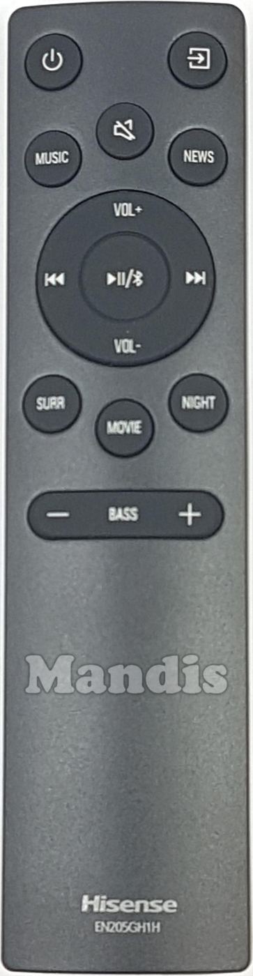 Mando a distancia original EN205GH1H que sirve para barra de sonido de la marca Hisense. Se trata de un modelo original de mando a distancia.