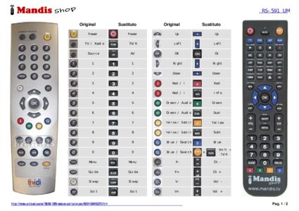 Este mando a distancia sustituye la mayoría de las funciones de tu RS-591 UM (014002770). No es un mando a distancia universal, sino una copia con la mayoría de las teclas y funciones de tu original.