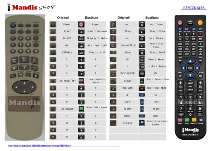Este mando a distancia reemplaza completamente tu REMCON1436 y ofrece todas las funciones del original.