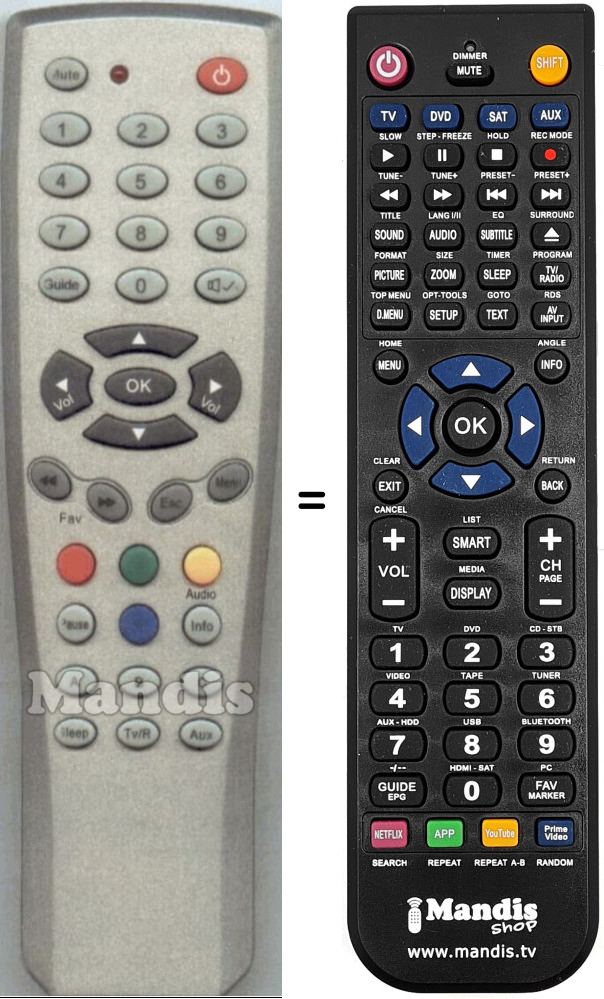 Mando a distancia que reemplaza al original en todas sus funciones.