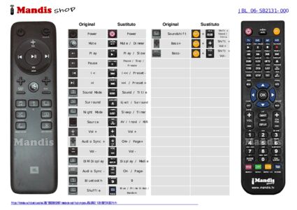 A continuación, le mostraremos la correspondencia entre cada uno de los botones del mando original y el botón que realiza la misma función en el mando de sustitución. En algunos casos, es posible que necesite presionar la tecla SHIFT antes de pulsar otro botón para realizar ciertas acciones. Estas funciones adicionales suelen ser poco utilizadas y se incluyen para facilitar su comprensión del nuevo mando a distancia, o porque el mando original tiene más botones que su equivalente.