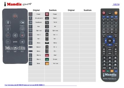 Este mando a distancia reemplaza completamente tu SB150 (105000690) y ofrece todas las funciones del original.
