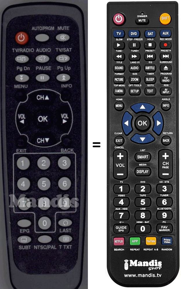 Mando a distancia que reemplaza al original en todas sus funciones.